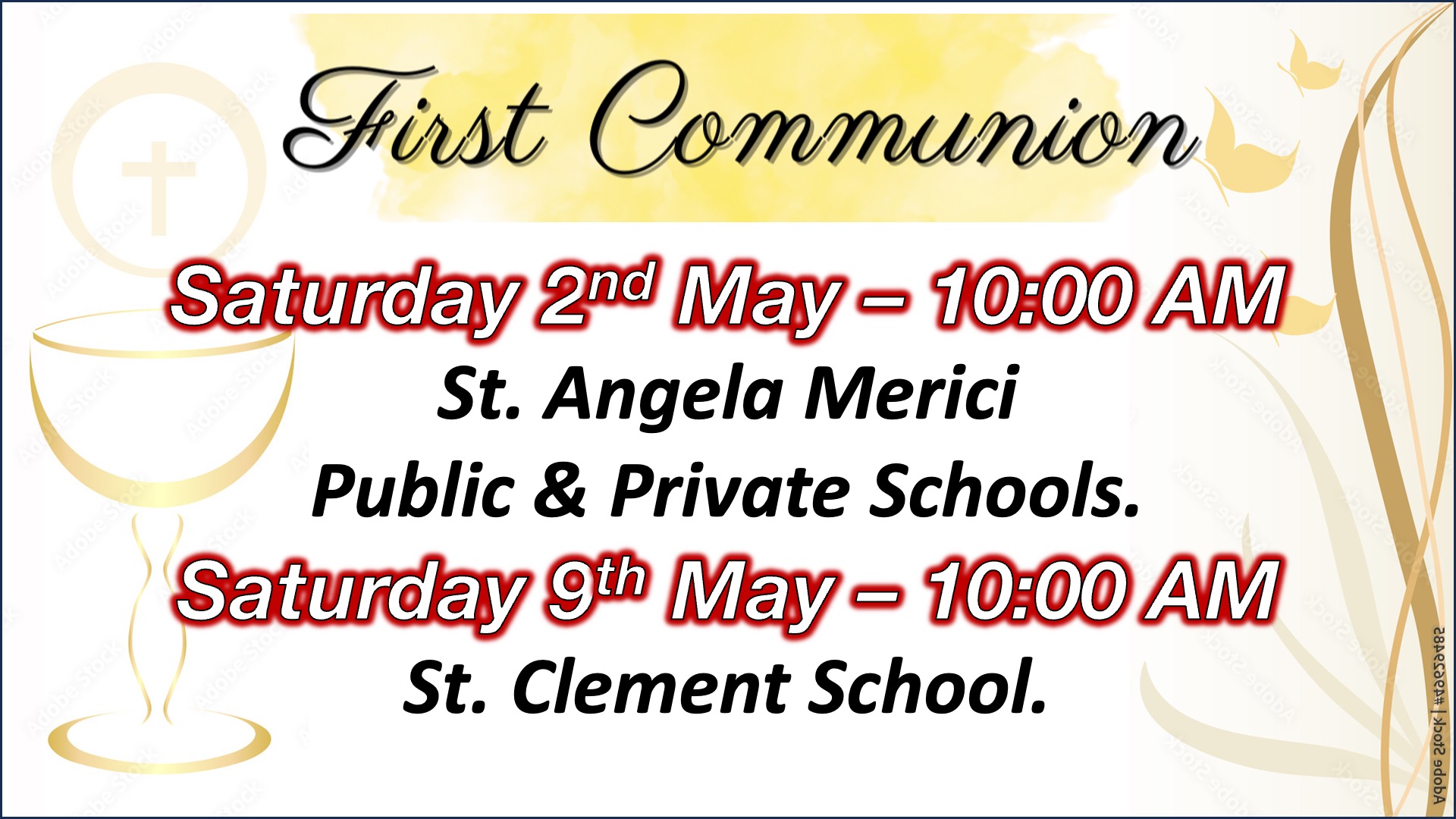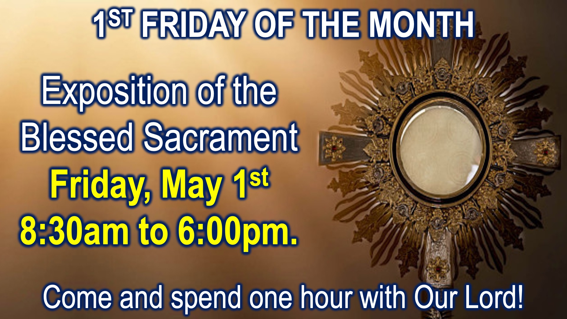 - First Fridays of every month, Exposition of the Blessed Sacrament in St. Joseph Chapel between 8:30 am - 6 pm