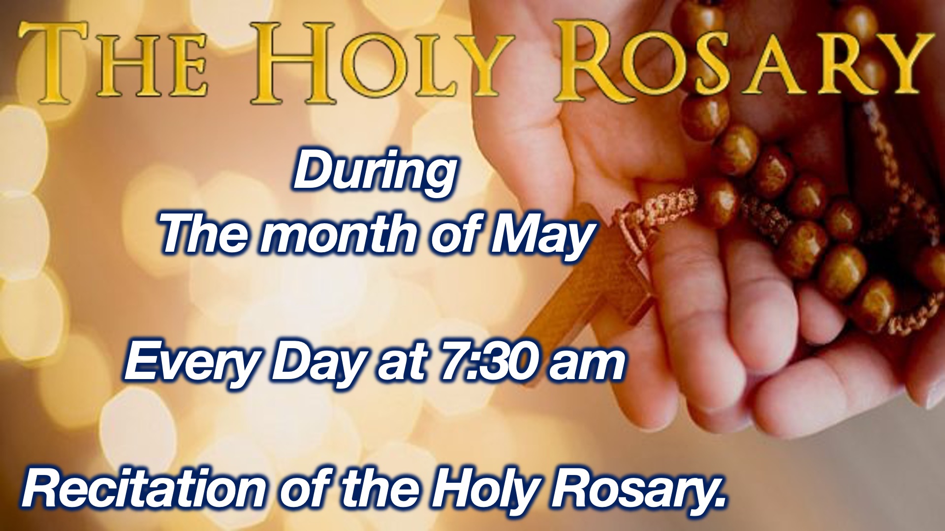 - 3:00pm - Divine Mercy Chaplet (prayed daily during the week)