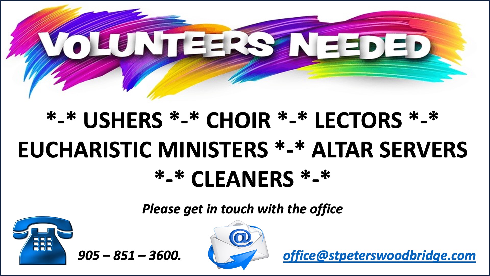 Parishioners are encouraged to view our weekly bulletin as it not only contains the weekly mass schedule, but also includes information on ministries, events and special announcements that relate to our parish and within our community.